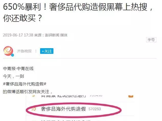 6月17日,第一財經(jīng)發(fā)表了一篇名為“奢侈品代購造假調(diào)查”的文章,在各大媒體刷屏了,引發(fā)網(wǎng)友關(guān)注。